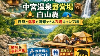 中宮温泉野営場 白山麓の魅力を詳しく解説。設備、料金、アクセス、注意点、周辺温泉までわかる、白山麓で自然を満喫したい人向けの完全ガイドです。