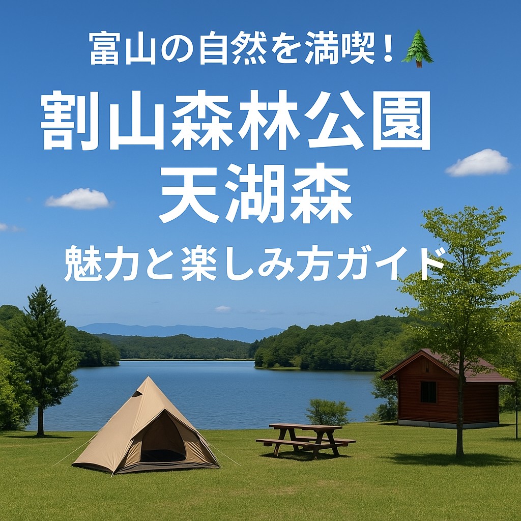 富山市の南東に位置する「割山森林公園 天湖森(てんこもり)」は、都会の喧騒から離れて、心も体もリフレッシュできる自然豊かな公園です🌳✨ 湖や森に囲まれたこの場所は、広々とした敷地の中にキャンプ場・遊歩道・バーベキュー施設・温泉などがそろっていて、家族連れやカップル、ソロキャンパーにも大人気のスポットなんです。