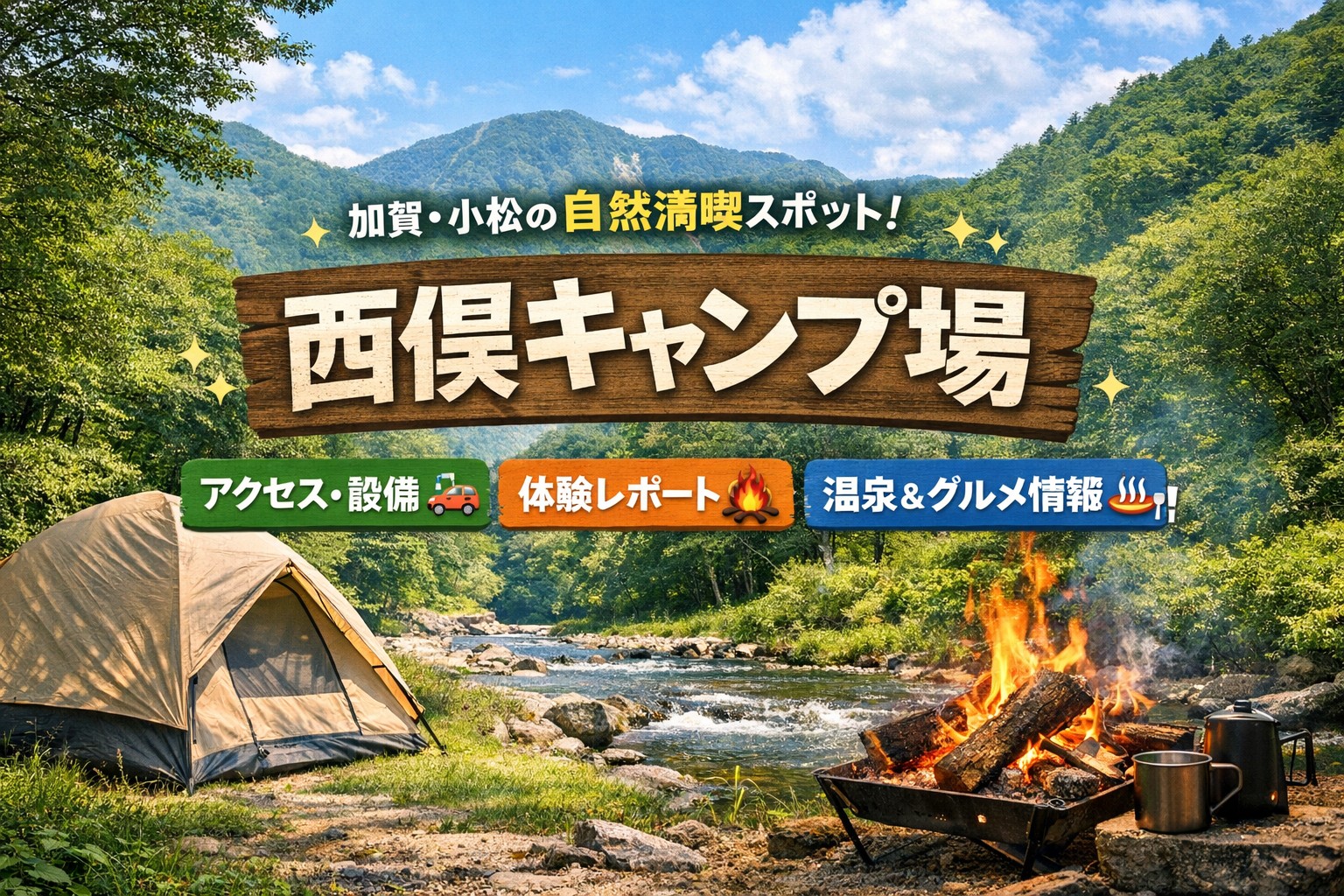 加賀・小松エリアからアクセスも良く、初心者からベテランまで楽しめる自然派キャンプ場として人気上昇中⤴️。この記事では、西俣キャンプ場の魅力やアクセス、体験レポート、周辺スポットまで、ぜ〜んぶまとめて徹底ガイドします💡✨